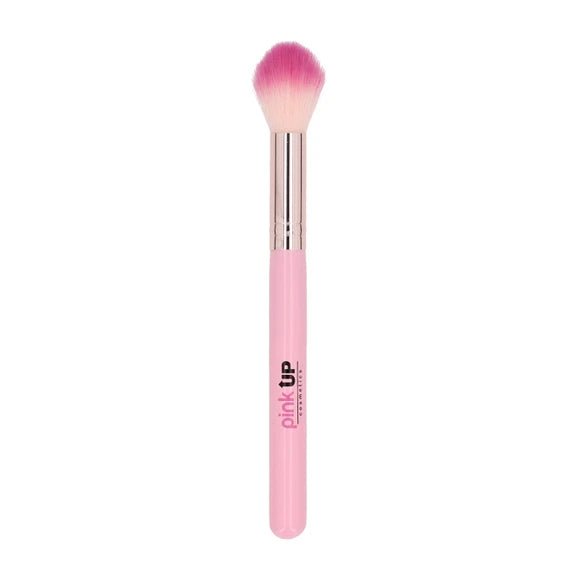 Brocha especial para aplicación de productos en polvo, principalmente iluminadores y polvos traslucidos. Aplicación precisa, en punta de nariz, mandíbula, pómulos. Logra iluminar el tono de la piel y realzar las facciones del rostro.